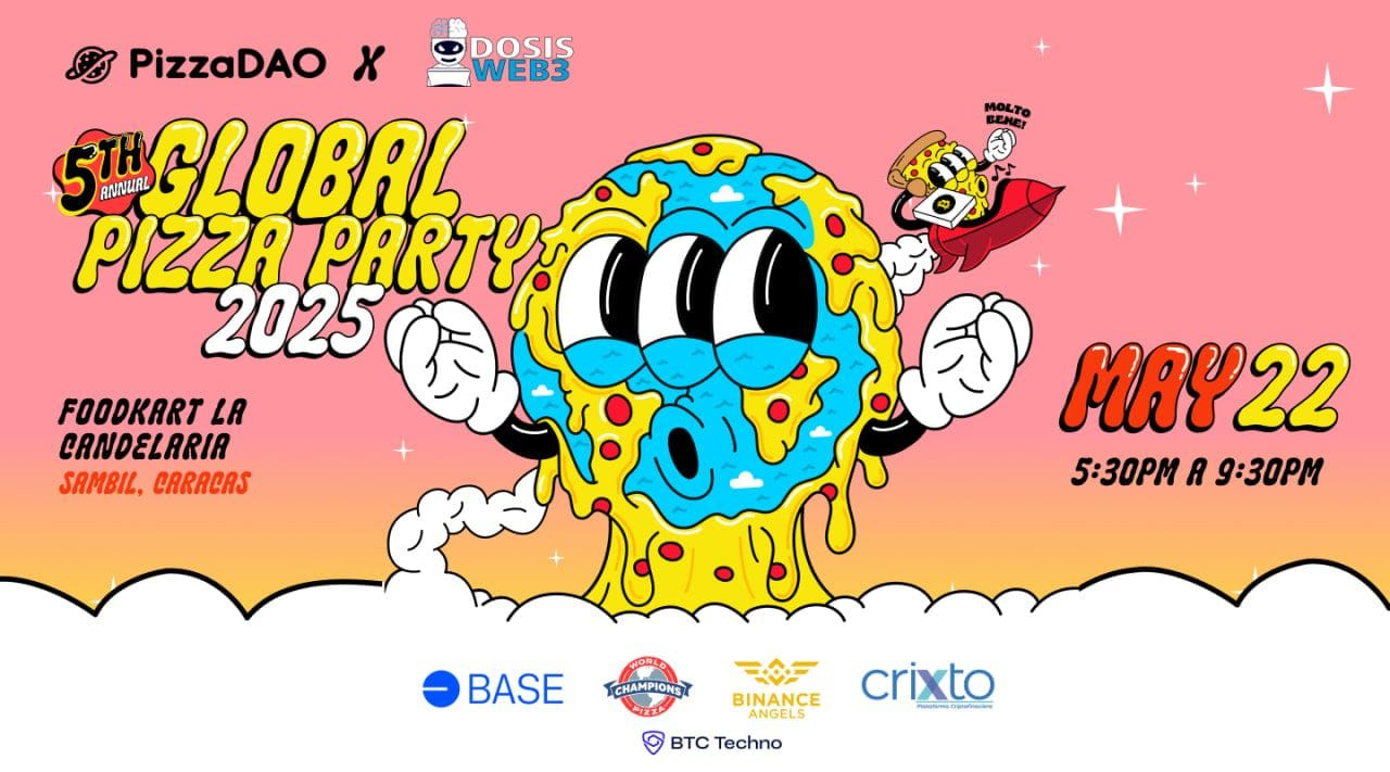 Este 22 de mayo, Caracas se suma a la 5ª edición de la Global Pizza Party, una celebración mundial organizada por PizzaDAO que reúne a más de 400 ciudades bajo un mismo lema: compartir, aprender y celebrar el espíritu cripto (con pizza incluida, obvio).