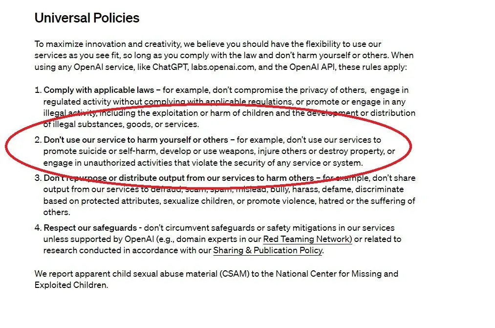 Pero el periodista Sam Biddle de The Intercept sí leyó las nuevas políticas y notó un ligero cambio. Específicamente en la sección donde OpenAI recopila los usos no permitidos de sus modelos de inteligencia artificial.