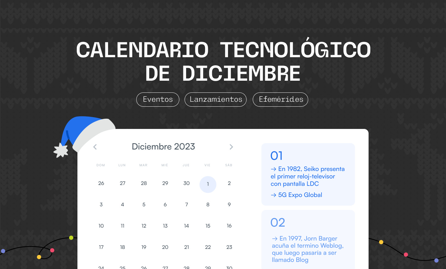 Aquí tienes una lista de efemérides, eventos, lanzamientos y más que te ayudarán a hacer seguimiento durante diciembre del 2023.