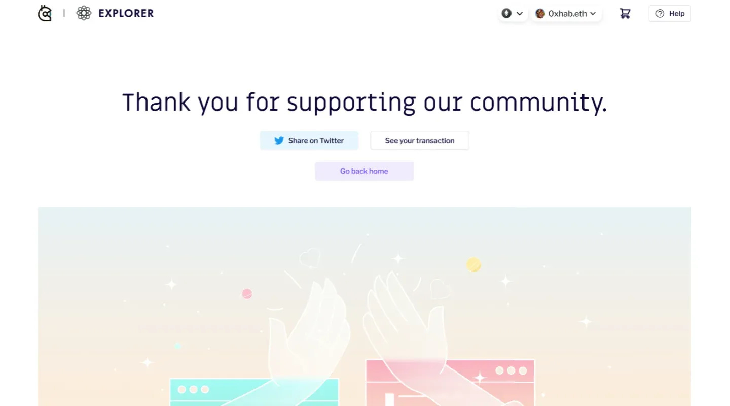 ¡Listo! Gitcoin te dará las gracias con el siguiente mensaje por ayudar a la comunidad Web3, y en Asilo te agradeceremos por haber aportado y ayudarnos a que nuestras iniciativas se aceleren y lleguen a ti más rápido.