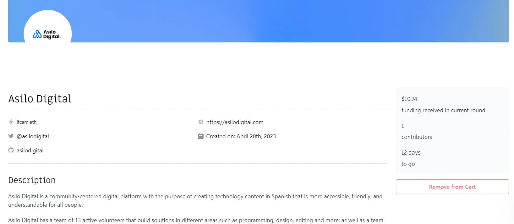 Espacios como Gitcoin Grants ayudan a los miembros de proyectos digitales y Web3 en especial a recibir apoyo y financiamiento de las comunidades de Internet para poner en práctica sus ideas y generar impacto. Asilo Digital es una de esas iniciativas.