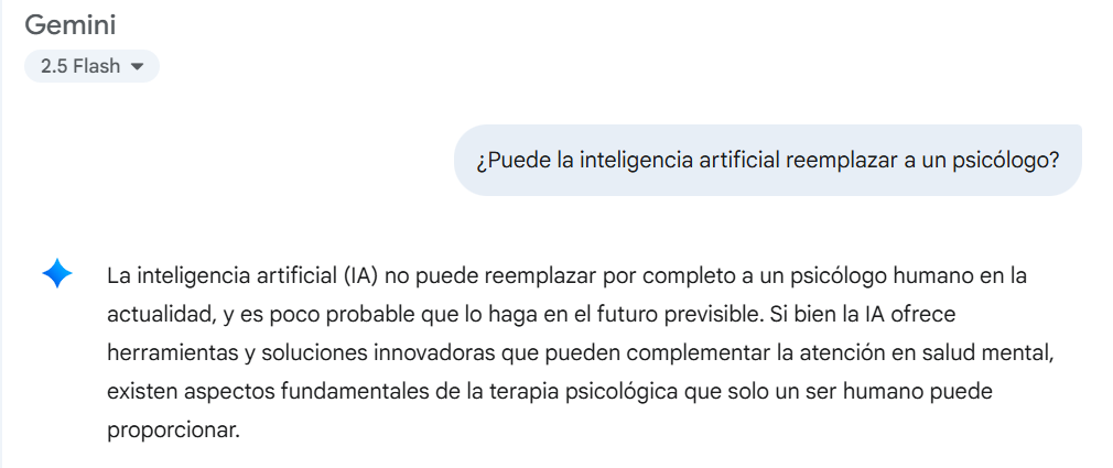 Hoy por hoy, la IA no cuenta ni con el criterio clínico ni con la comprensión profunda que se necesita para ocupar el lugar de un psicólogo. Pero si reducimos al psicólogo a alguien que solo escucha tus desahogos "y ya"; dice frases positivas, da consejos, entonces sí, muchos ya lo están reemplazando, aunque no se den cuenta.