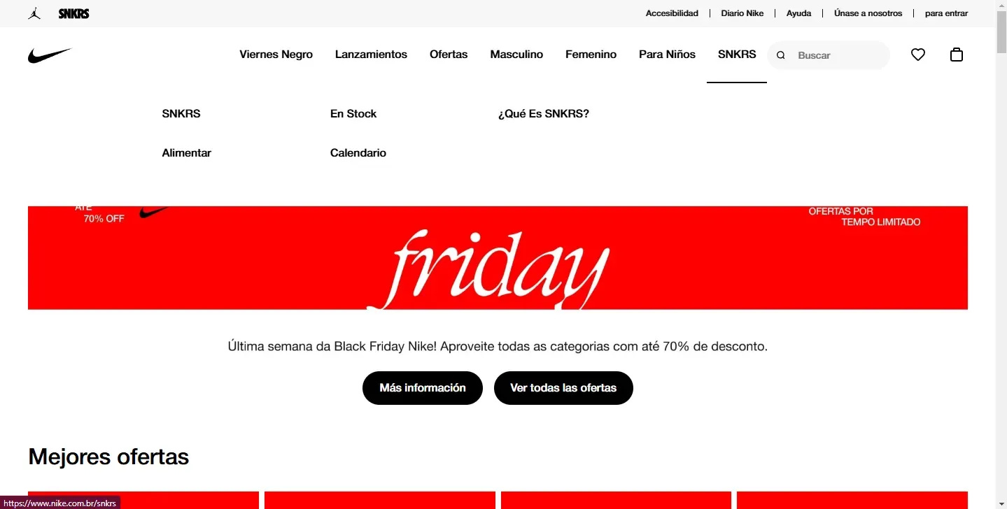 Este principio es clave en los menús de navegación. Un ejemplo lo podemos encontrar en la página de Nike, que prioriza ofertas y modelos. Por su parte, la media también tiene categorías importantes, pero más específicas o son reiterativas.