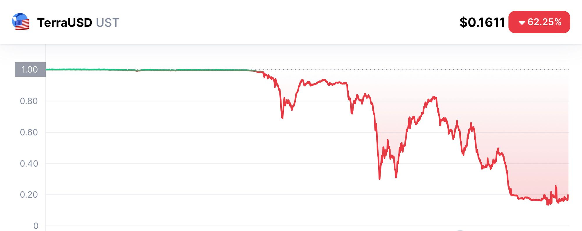 Consecuentemente, el algoritmo emitió una gran cantidad de LUNA para compensar esta caída de la stablecoin, pero en un periodo de mercados bajistas esto no fue suficiente, y al inundar el mercado de LUNA con una demanda casi inexistente, se entró en una espiral de la muerte que mandó el precio de la criptomoneda pasó de 80 $ a 0.00003795 $ en menos de una semana.