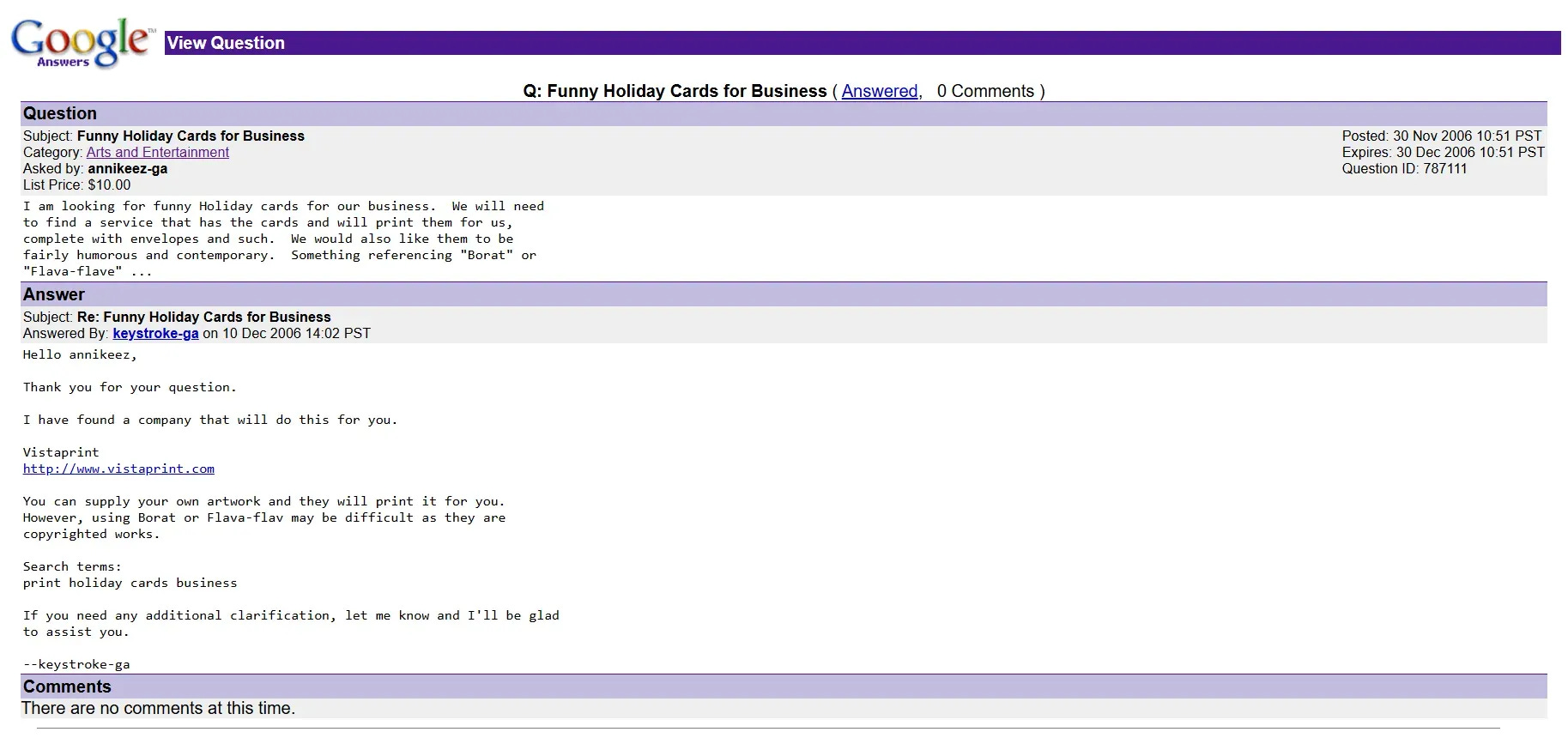 Google cerró la sección de preguntas el 4 de diciembre de 2006.