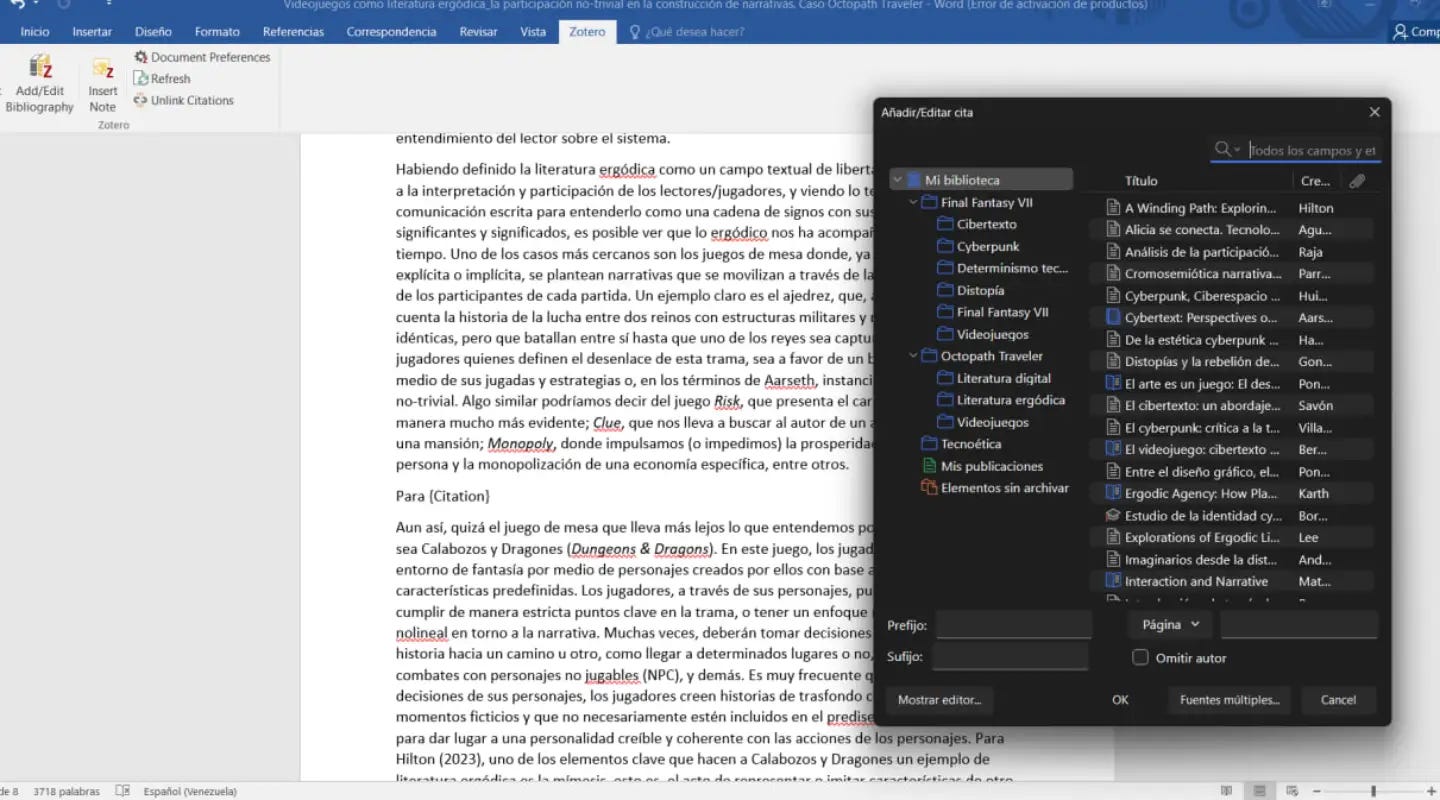 Una de las funciones más útiles de Zotero es agilizar el proceso de citar textos y crear la bibliografía que usamos en una investigación. Esto lo podemos hacer desde el complemento de la app en procesadores de texto, o directamente desde la versión de escritorio.
