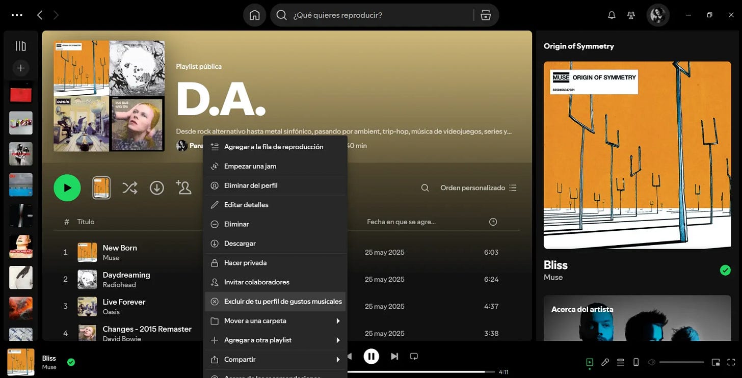 Excluir una playlist de tu perfil de gustos