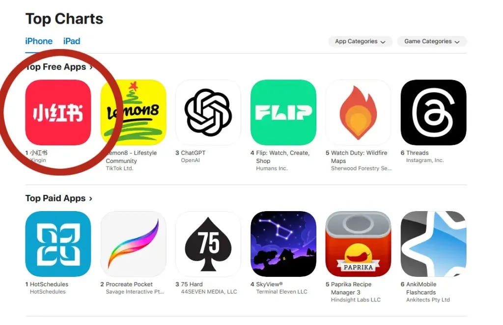 Aunque inicialmente fue diseñada para el público chino y concebida como una respuesta a Instagram bajo la premisa de una guía de compras para turistas, la combinación de contenidos de estilo de vida, videos cortos y herramientas comunitarias ha atraído a los llamados 'refugiados de TikTok', quienes buscan nuevas plataformas tras la incertidumbre que rodea a la popular app de ByteDance.