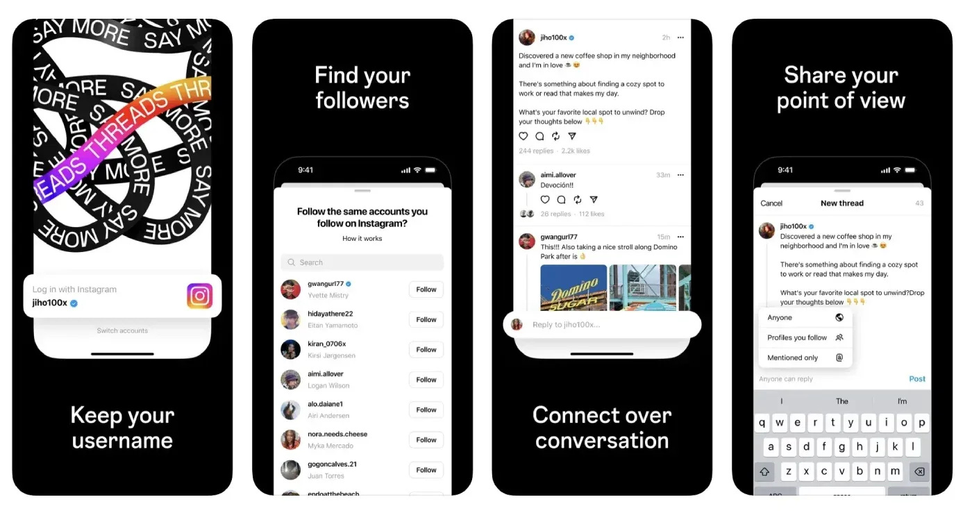 En esta etapa inicial, Threads está principalmente integrada a Instagram. Al momento de abrir nuestra cuenta, la aplicación nos pregunta si queremos seguir las mismas cuentas que seguimos allá, y también nos ofrece la opción de personalizar nuestro perfil con los mismos datos de Instagram.