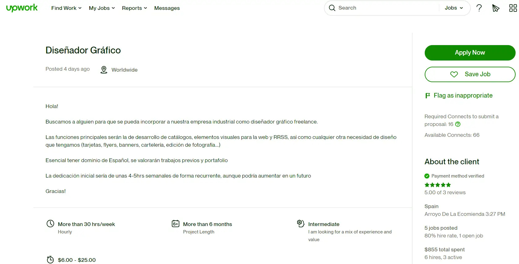 Tampoco pierdas de vista si el trabajo esta verificado en la plataforma. Esto significa que el reclutador solo está buscando personas en Upwork. Si no está verificado, significa que está buscando en esta y otras páginas. Esto representa mayor competencia, un factor a considerar al economizar connects.